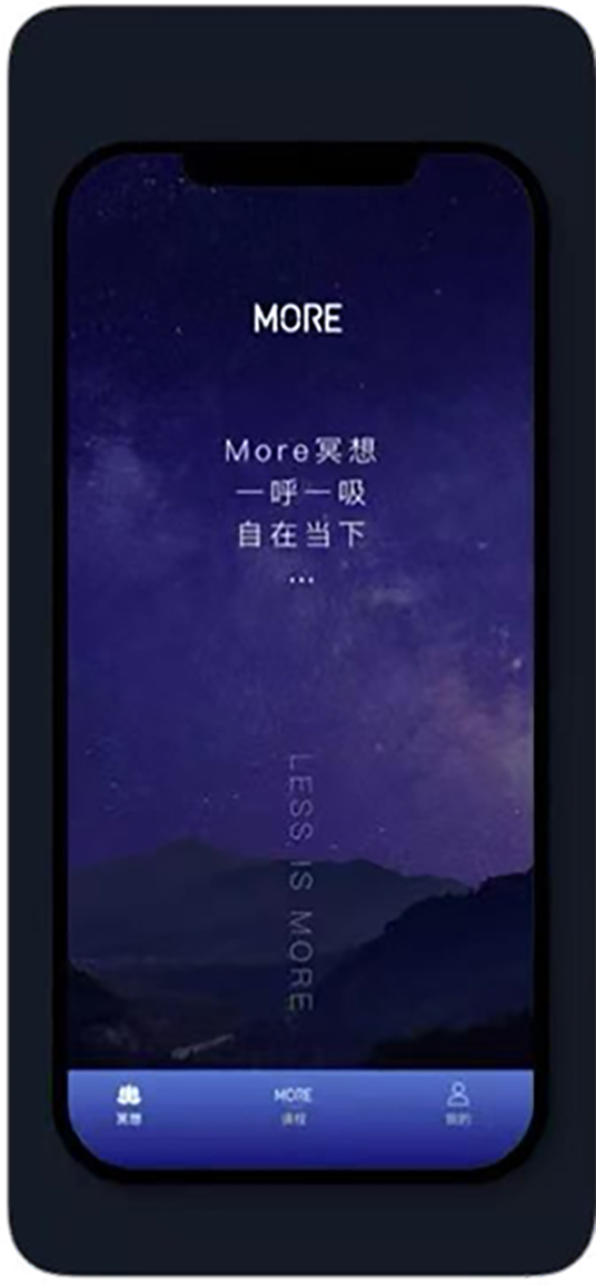 More冥想APP,是一款通过冥想练习,放松身心,为用户提供各种不同场景需求的应用。同时,More也提供了生命智慧成长课程,涵盖觉禅系列、生命智慧、女性成长、财富创造等丰富课程,致力于倡导更多人回归内在探索,唤醒生命力。